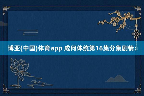 博亚(中国)体育app 成何体统第16集分集剧情: