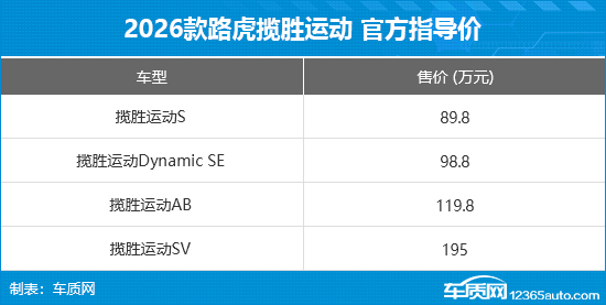 博亚体育app 2026款路虎揽胜怒放上市 售价89.8万元起