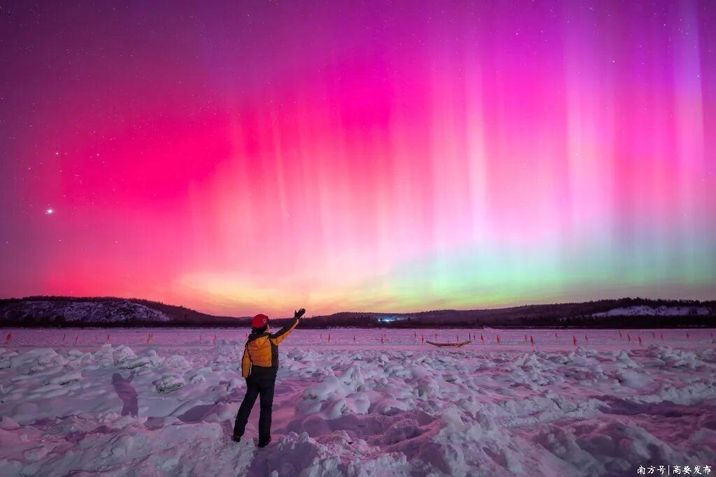 这次磁暴发生的同期,我国多地也献艺了极光秀。