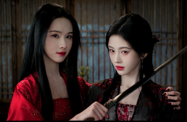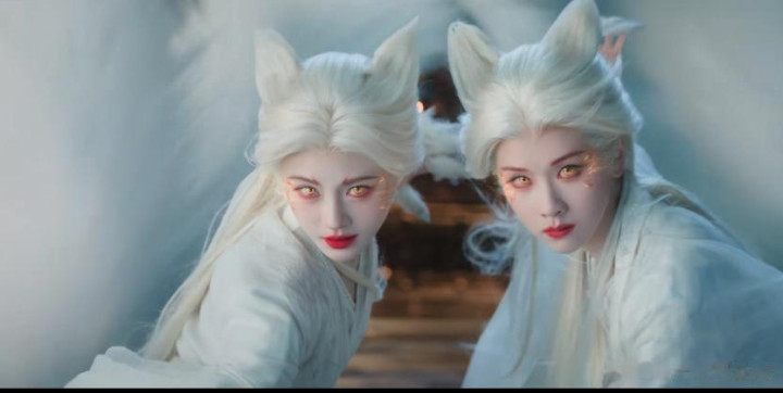 两个东说念主的眼线画的王人很长,应该是为了呈现出狐狸的娇媚。
