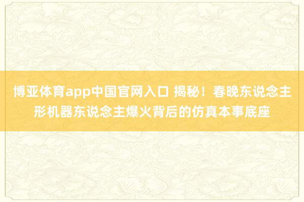 博亚体育app中国官网入口 揭秘!春晚东说念主形机器东说念主爆火背后的仿真本事底座