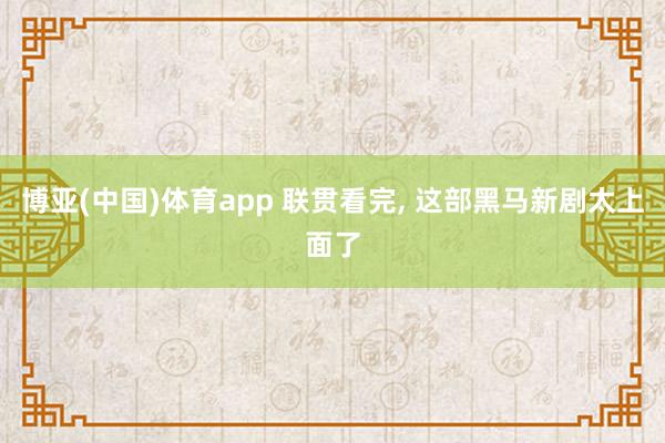 博亚(中国)体育app 联贯看完, 这部黑马新剧太上面了