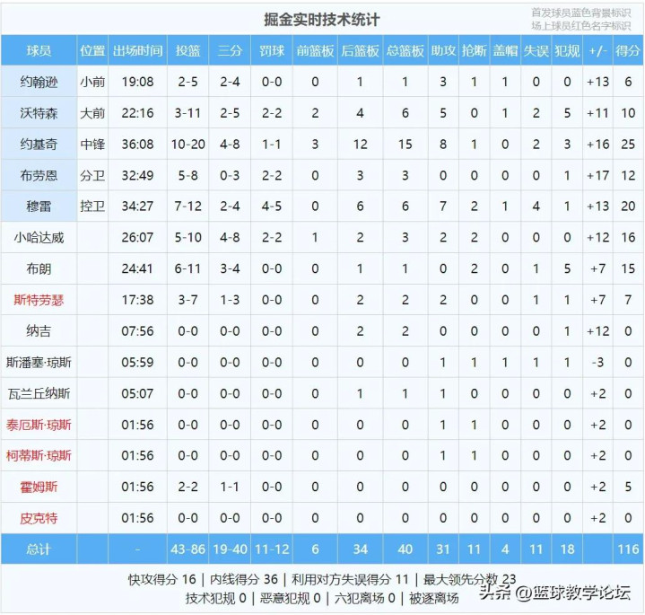 约基奇20投10中,三分8中4,罚球1中1,砍下25分15篮板8助攻1抢断2造作,正负值+16。第三知人善任淳厚独得10分5篮板4助攻,领导掘金单节40-21带走比赛。小哈达威投进4记三分,拿到16分3篮板2助攻2抢断,正负值+12。