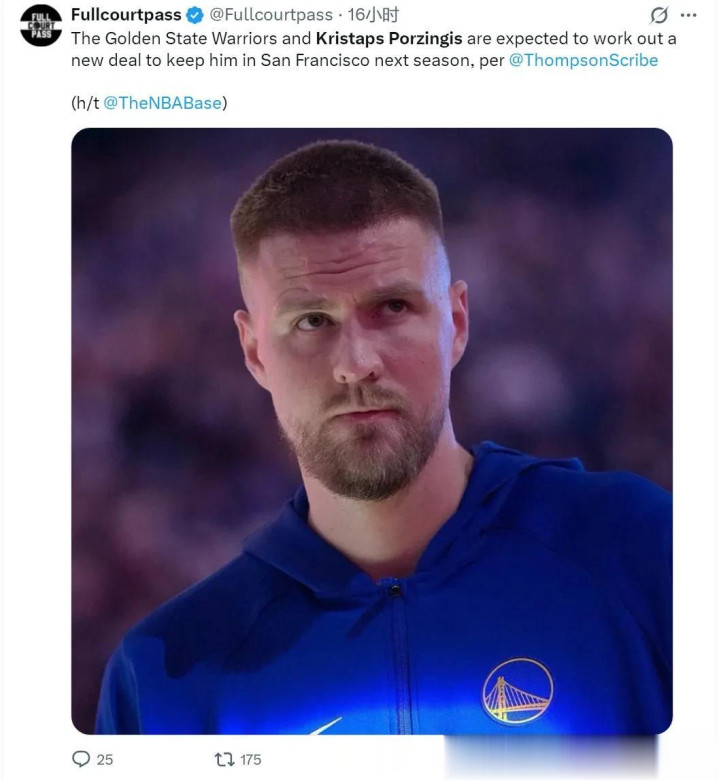 上一场打奇才,波尔津吉斯三分11中5,砍下28分8篮板3助攻。今天比赛启动之前,骁雄记者Marcus Thompson报谈,骁雄和波尔津吉斯专诚收场续约协议,两边齐念念完成续约。波尔津吉斯现存协议2年6000万好意思元,今夏到期。