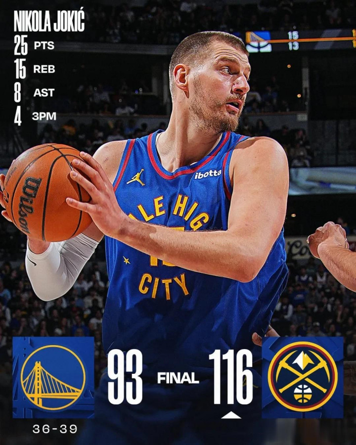北京时辰3月30日,NBA旧例赛,掘金116-93大捷骁雄。此役事后,掘金48胜28负一经名次西部第四,落伍第三的湖东谈主1个胜场。骁雄36胜39负不竭名次西部第十,落伍第九的斥地者1.5个胜场,落伍第八的快船3个胜场。