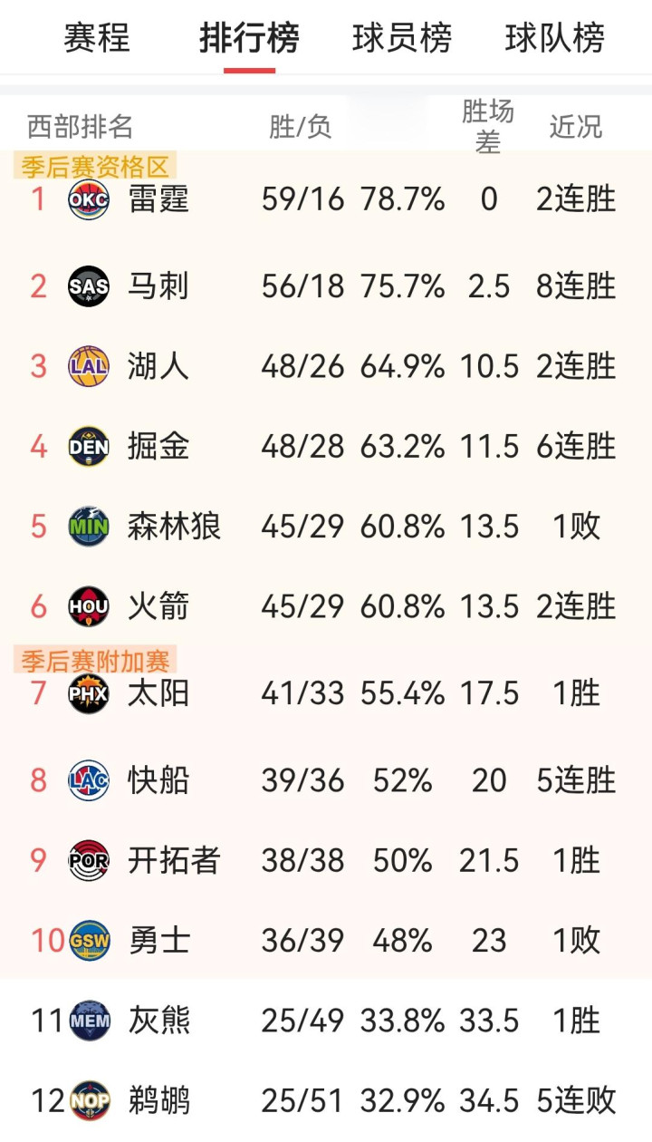 与此同期,快船成了这场比赛的最大赢家。现在快船以39胜36负排名西部第八,豪取5连胜的他们情状火热,铁汉输球后以36胜39负排名西部第十,仍是落伍快船3个胜场,险些莫得追上的可能。设备者以38胜38负排名第九,举座实力有限,惟有快船延续刻下情状,不管最终拿到第七照旧第八的排行,王人只需要在附加赛赢下一场就能锁定季后赛限额,晋级前程一派光明。