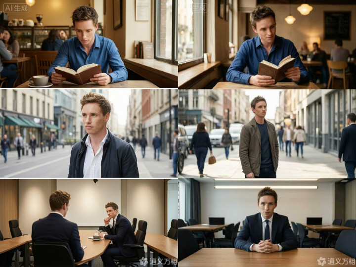 同期,模子对场景环境的适配性证实优异,不同场景的光影逻辑、环境氛围与东谈主物现象高度匹配,咖啡馆的暖光、户外的当然光、会议室的室内寒光均合适场景逻辑,东谈主物衣饰、姿态也与场景属性高度契合。