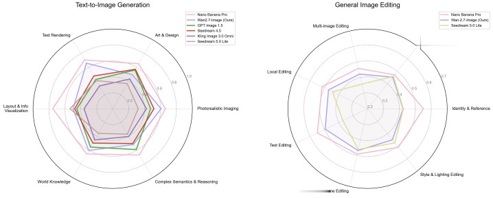 在东谈主类偏好盲测中,Wan2.7-Image多项才能位列世界第一,详细收货接近Nano Banana Pro。同步上线的Wan2.7-Image-pro版块在历练数据规模和模子尺寸上进一步扩大,构图踏实性和语义相识精确度更高。