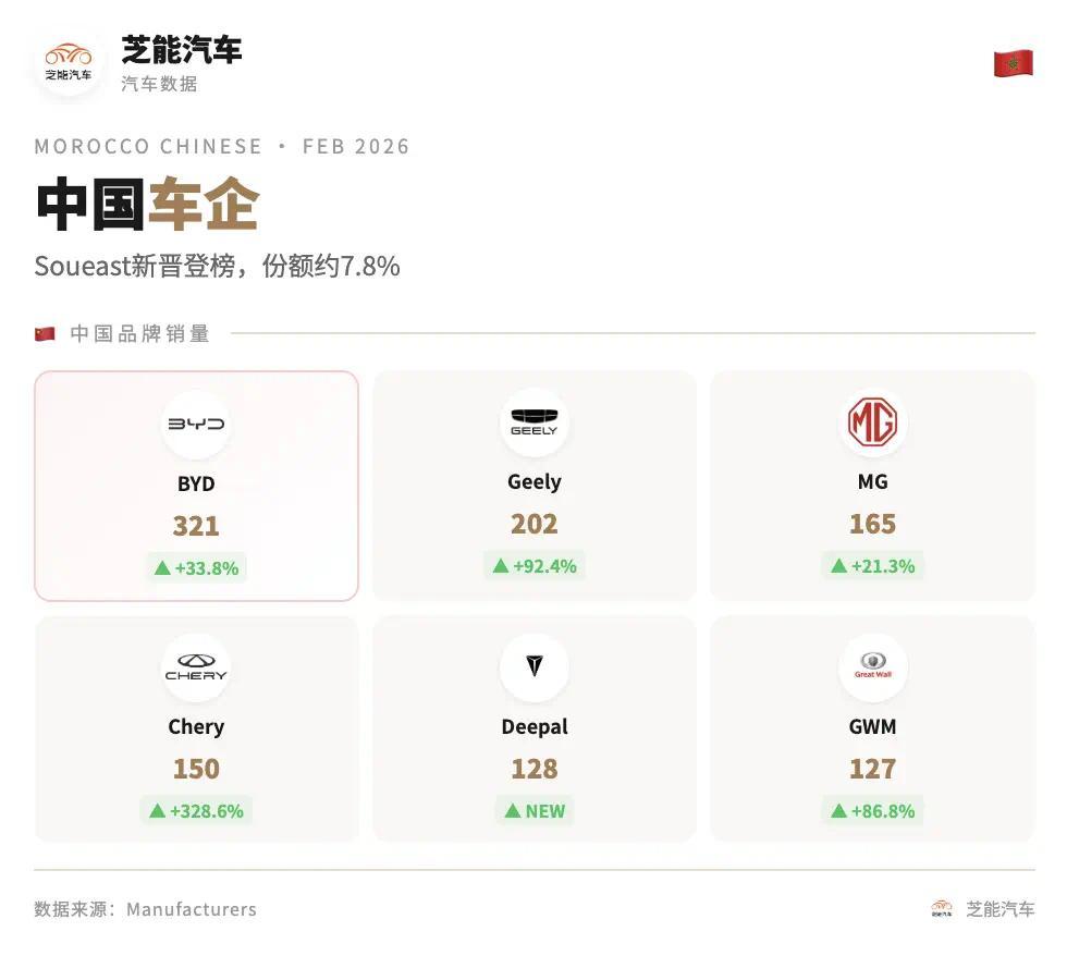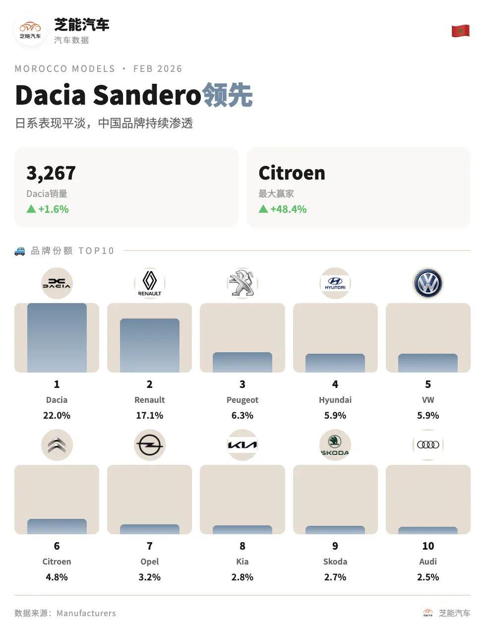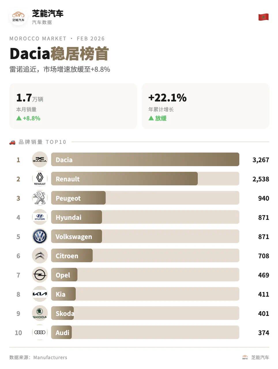 博亚(中国)体育app 非洲车市 | 摩洛哥2026年2月:中国品牌销量破千